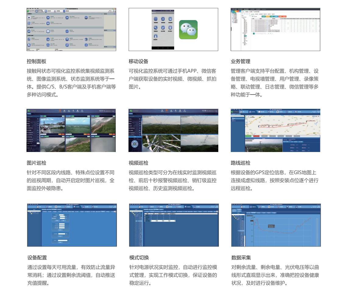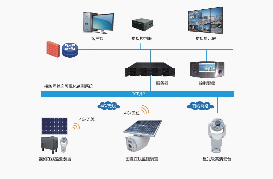 鐵路供電的特點是線路長,地點偏僻,環境復雜,單純依靠人工巡檢效果差,安全風險大,隱患重重,供電安全直接影響著鐵路運輸的正常秩序。接觸網狀態可視化監控系統是一套全方位監管電氣化鐵路牽引供電線路的遠程巡檢系統,該系統根據高速鐵路供電設備運行的安全需求,可對上跨橋、上跨電力線、隧道出入口、大風區等重點位置進行圖像/視頻監測,對故障事件起到“早發現、早預防”的作用,保障高速鐵路運營秩序,保障電氣化鐵路接觸網高效、安全、可靠的運行